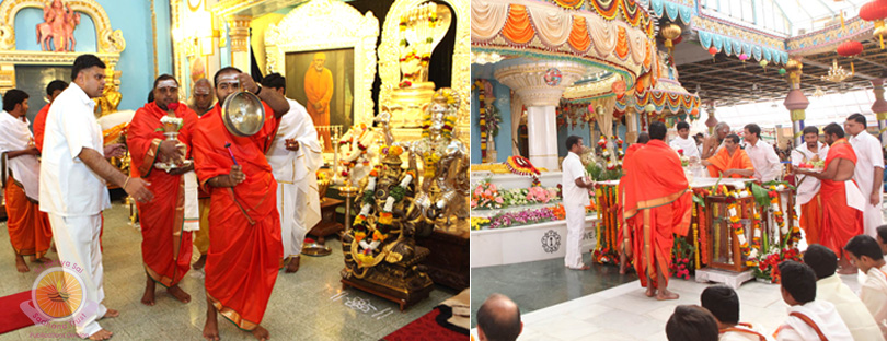Los Procedimientos y Ritualisistica del Abhishekan, duró una hora y media. El canto del Sri Sathya Sai Sahasra Namavali fue seguido por el Mangala Arathi ofrecido al Lingam. Todo el procedimiento fue llevado a cabo por el Prof. Nanjunda Dixit, que ofició el Ati Rudra Maha Yajnam en 2006. El Lingabhishekam está dirigido a la paz universal y armonía global.
